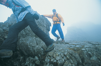 Mobile phones often have no coverage in the mountains so it would be advisable to carry a whistle. You will need a good map the correct boots suitable clothing and don't forget to check the weather. Reports are often on the doors and notice boards of outdoor shops and tourist offices.
